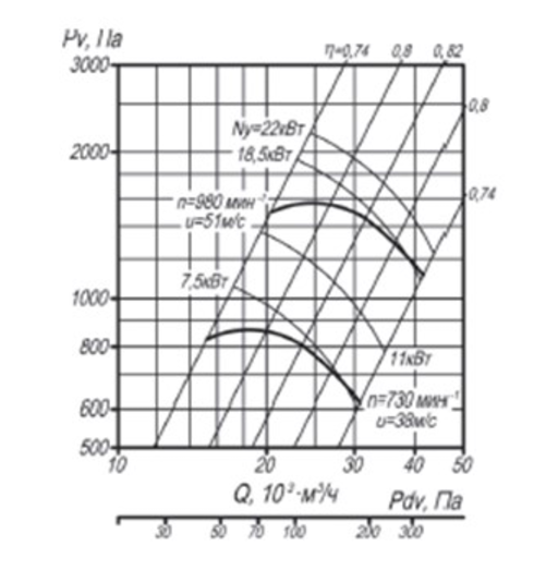 Аэродинамическая характеристика вентилятора ВЦ 4-70 №10 с диаметром рабочего колеса D=Dном